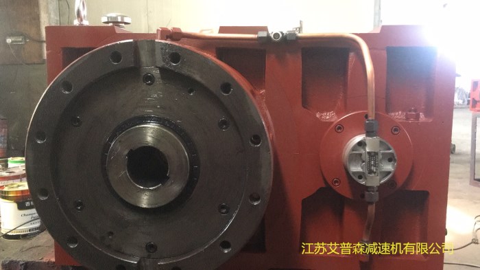 ZLYJ減速機是為塑料螺桿擠出機配套設計的高精度硬齒面帶推力座的傳動部件。產品設計采用了ZBJ19009-88所規定的各項技術規范。其特點是齒輪和軸類零件采用了高強度合金鋼材質。齒輪經滲碳、淬火、磨齒工藝加工。 江蘇艾普森減速機有限公司ZLYJ系列減速機齒輪精度為GB10095-88,6級。齒面硬度HRC54~62。在空心輸入軸前端配置有大規格推力軸承,承受螺桿工作時的軸向推力。整機具有體積小、承載能力高、傳動平穩、噪聲低、效率高等特點。