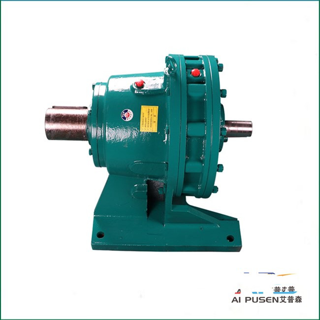 BW型臥式雙軸型擺線針輪減速機 第一、總述: 擺線針輪減速機全部傳動裝置可分為三部分:輸入部分、減速部分、輸出部分。在輸入軸上裝有一個錯位180的雙偏心套,在偏心套上裝有兩個稱為轉臂的滾柱軸承,形成H機構、兩個擺線輪的中心孔即為偏心套上轉臂軸承的滾道,并由擺線輪與針齒輪上一組環形排列的針齒相嚙合,以組成齒差為一齒的內嚙合減速機構,(為了減小摩擦,在速比小的減速機中,針齒上帶有針齒套)。當輸入軸帶著偏心套轉動一周時,由于擺線輪上齒廓曲線的特點及其受針齒輪上針齒限制之故,擺線輪的運動成為既有公轉又有自轉的平面運動,在輸入軸正轉周時,偏心套亦轉動一周,擺線輪于相反方向轉過一個齒從而得到減速,再借助W輸出機構,將擺線輪的低速自轉運動通過銷軸,傳遞給輸出軸,從而獲得較低的輸出轉速。 第二、擺線針輪減速機特點: 高速比和高效率單級傳動,就能達到1:87的減速比,效率在90%以上,如果采用多級傳動,減速比更大。 結構緊湊體積小由于采用了行星傳動原理,輸入軸輸出軸在同一軸心線上,使其機型獲得盡可能小的尺寸。 運轉平穩噪聲低擺線針齒嚙合齒數較多,重疊系數大以及具有機件平衡的機理,使振動和嗓聲限制在最小程度。 使用可靠、壽命長因主要零件采用高碳鉻鋼材料,經淬火處理(HRC58~62)獲得高強度,并且,部分傳動接觸采用了滾動摩擦,所以經久耐用壽命長。 設計合理,維修方便,容易分解安裝,最少零件個數以及簡單的潤滑,使擺線針輪齒輪減速機深受用戶的信賴。