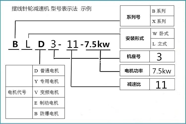 X系列擺線針輪減速機按照安裝形式定義有以下系列型號: